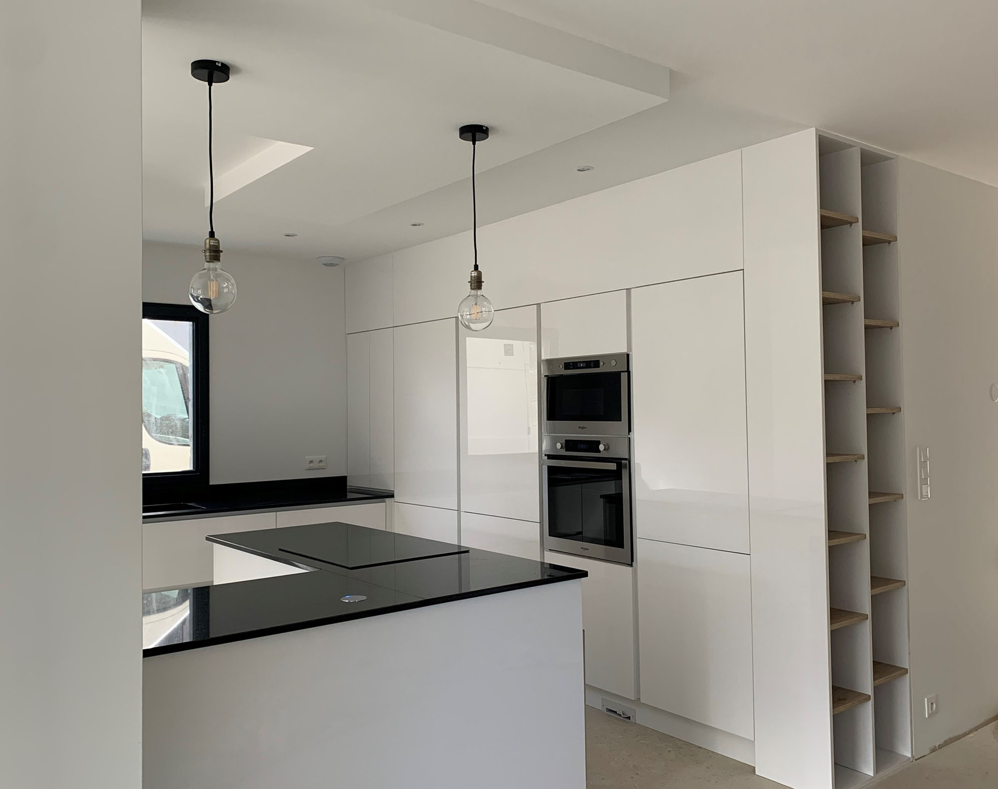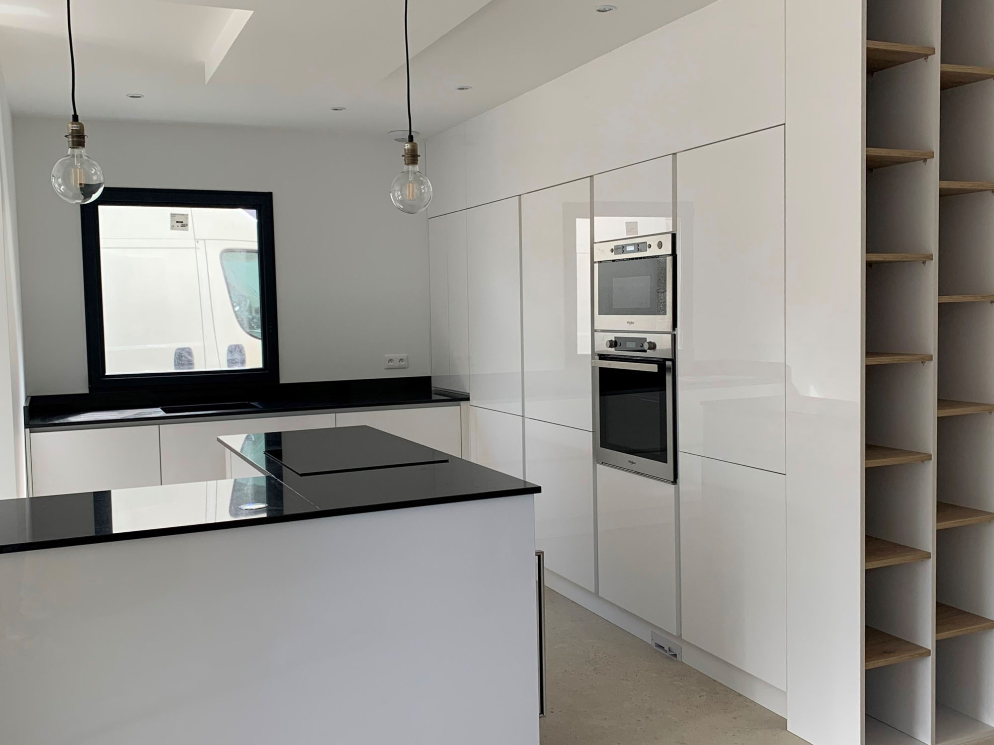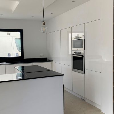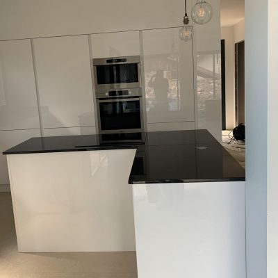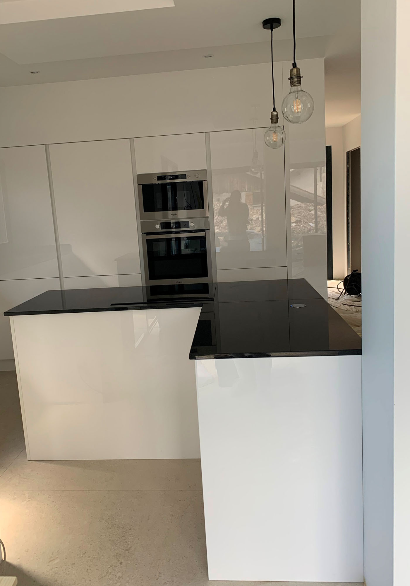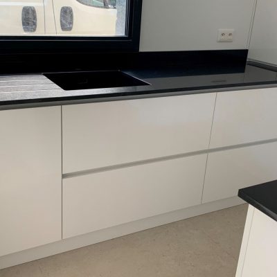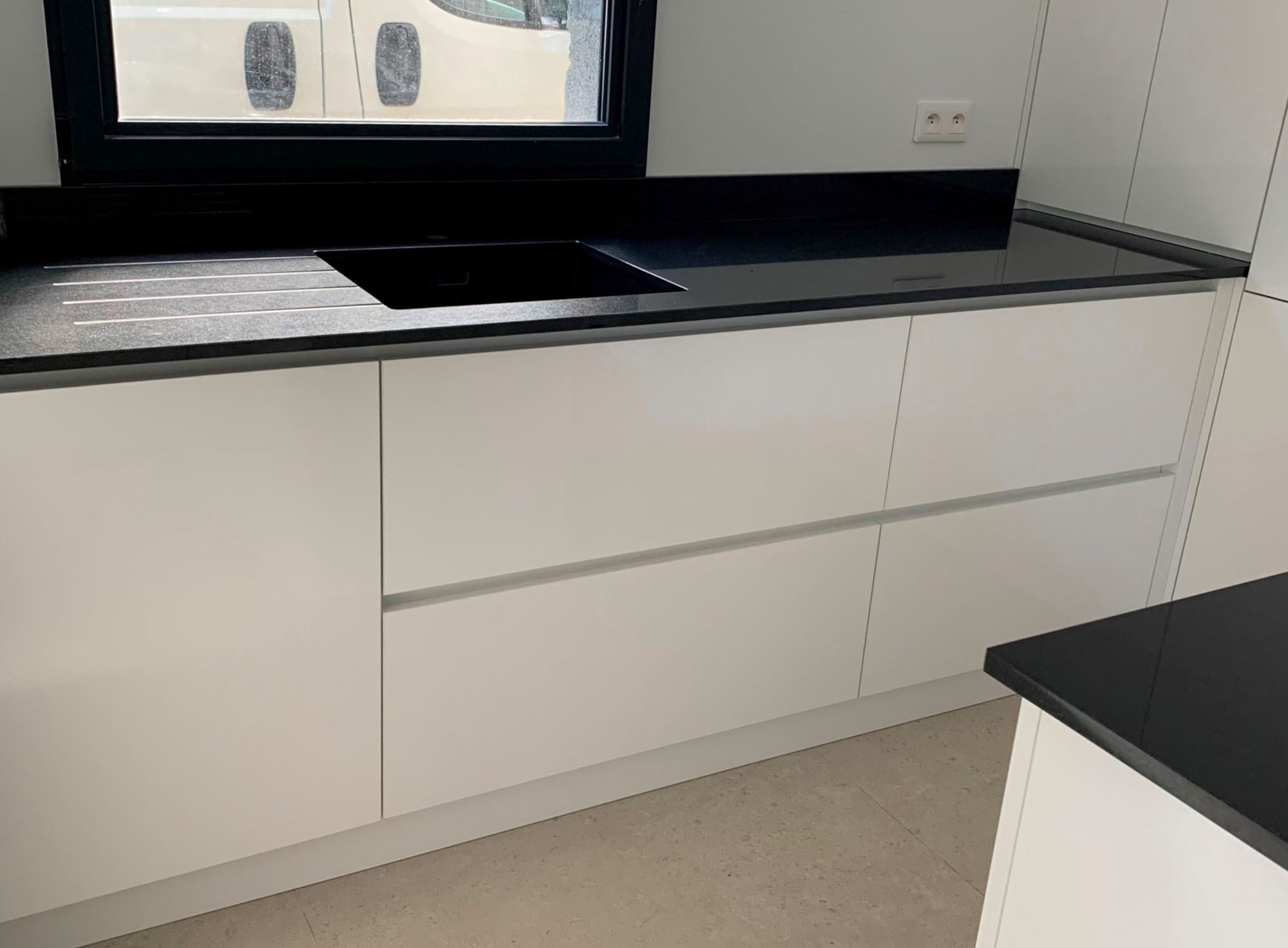 -Plan de travail et crédence en granit noir Zimbabwe cuir finition poli de 20 mm d’épaisseur avec égouttoir 4 traits sur le plan de travail