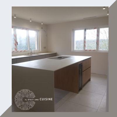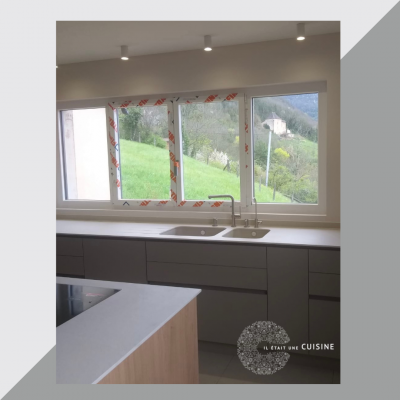 La cuisine moderne en nuances de gris, blanc et du bois : un mélange de sophistication et de chaleur