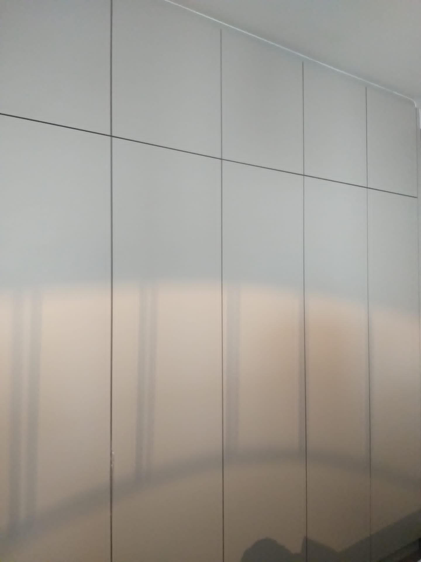 Voici un grand placard blanc installé par Il était une cuisine composé de 10 portes : 5 petites portes au dessus et 5 grandes en bas permettant de nombreux rangements.