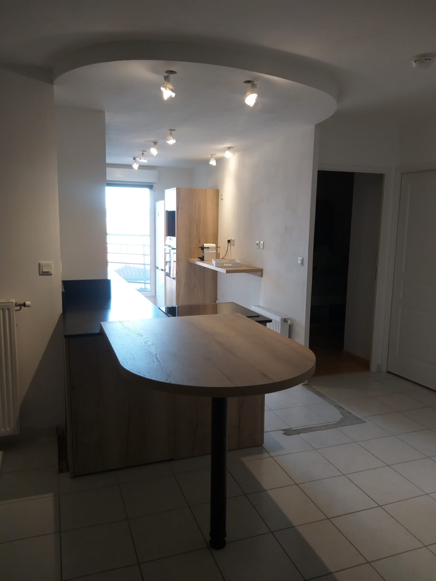 Tout d’abord la table est très originale : d’un coté découpe droite posée sur le plan de travail, de l’autre coté arrondi.