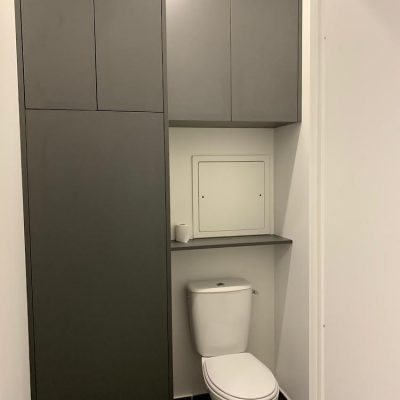 Il était une cuisine a installé des rangements  noir dans des toilettes, l’optimisation de l’espace est au maximum!