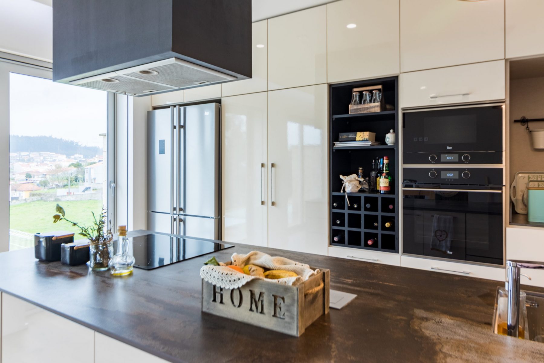 Le plan de travail est fabriqué à partir de quartz naturel, auquel est ajouté une petite quantité d’éléments métalliques ou de verre afin d’obtenir un plan de travail unique. Sa porosité nulle rend le quartz très résistant aux taches et sa texture empêche les bactéries de se développer.