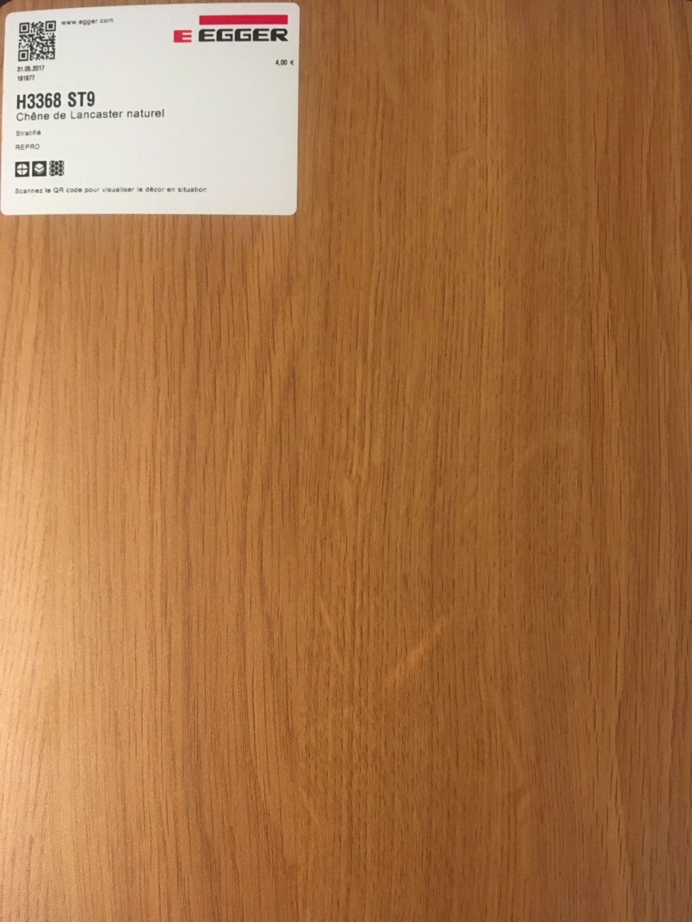 Il se compose de papier kraft (de 10 à 20 feuilles superposées) et d’une feuille de papier décoratif de surface, le tout étant imprégné de résine, collé sur un support hydrofuge d’épaisseur variable avec une contre-face en stratifié blanc avec un chant épais en PVC